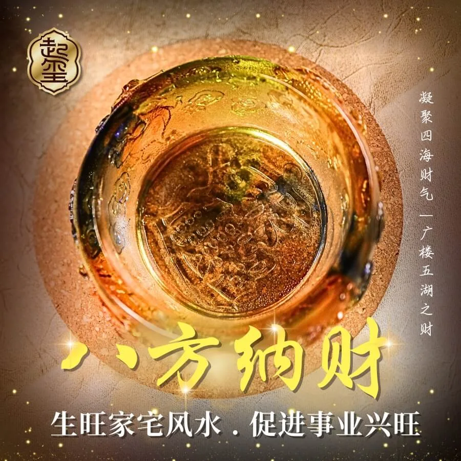 聚财,聚福气 聚宝盆多采用铜、银、琉璃等材料精心制作, 造型常见方形或圆形,表面装饰着象征财富、 福气与好运的图案和纹饰,