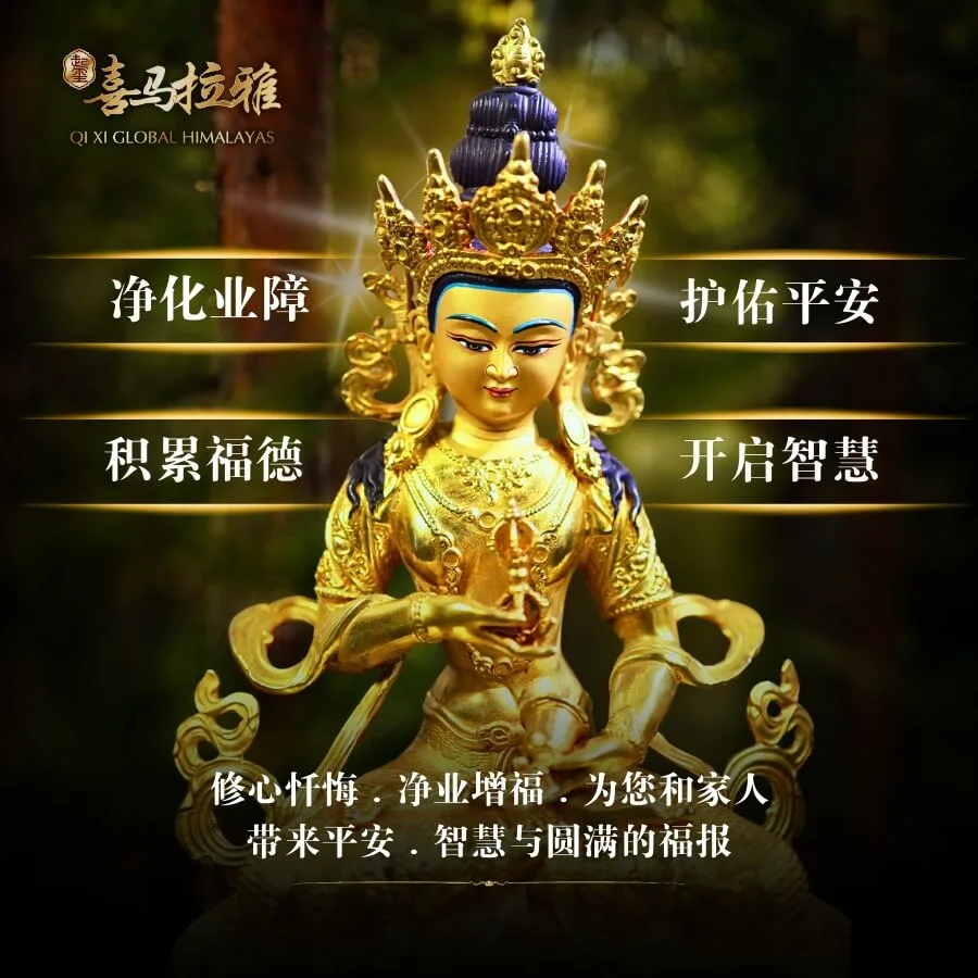 除障碍,长慈悲,护平安 绿度母是二十一度母中最受尊崇的化身, 象征迅速解脱苦难、化解障碍、 赐予慈悲加持。 这尊绿度母金像高