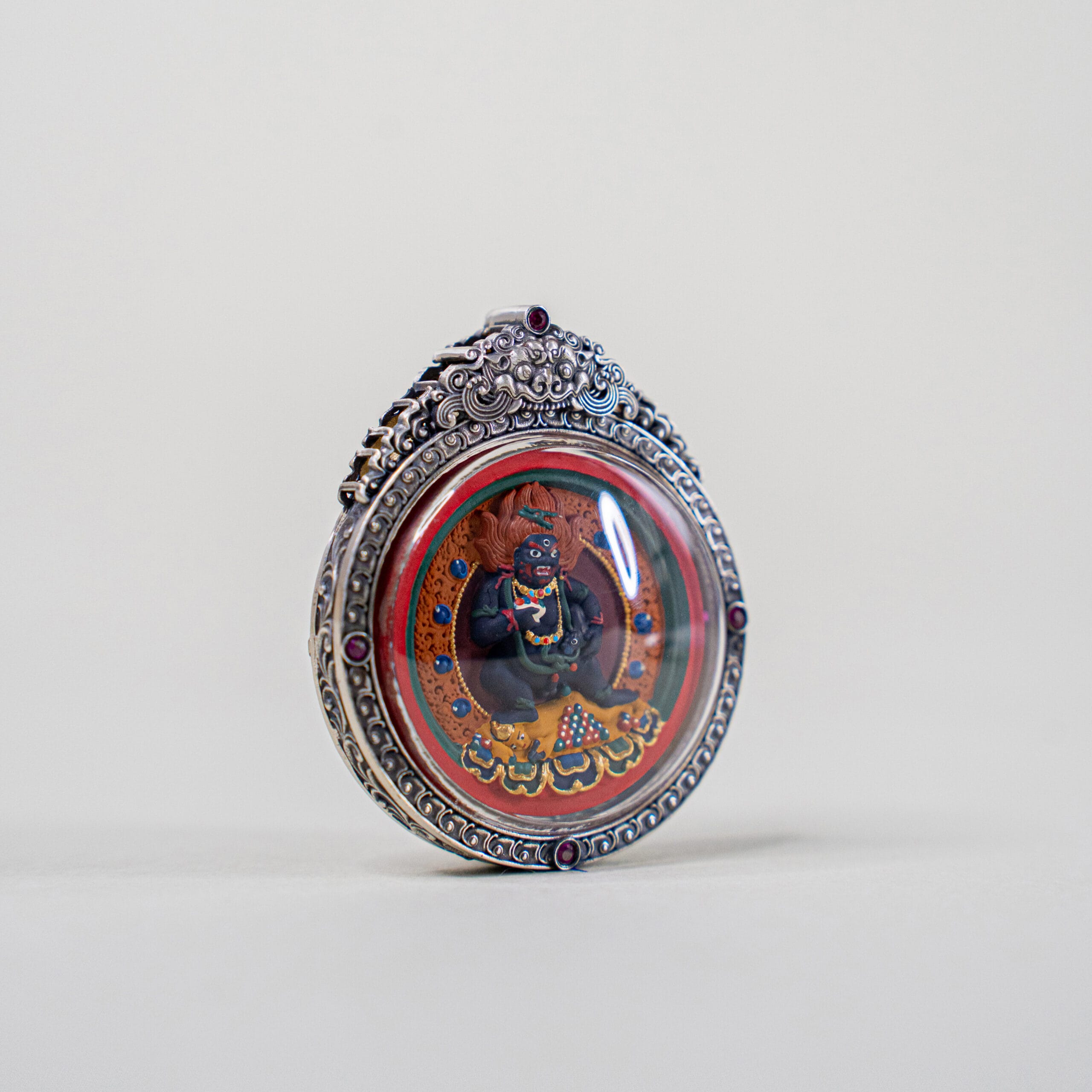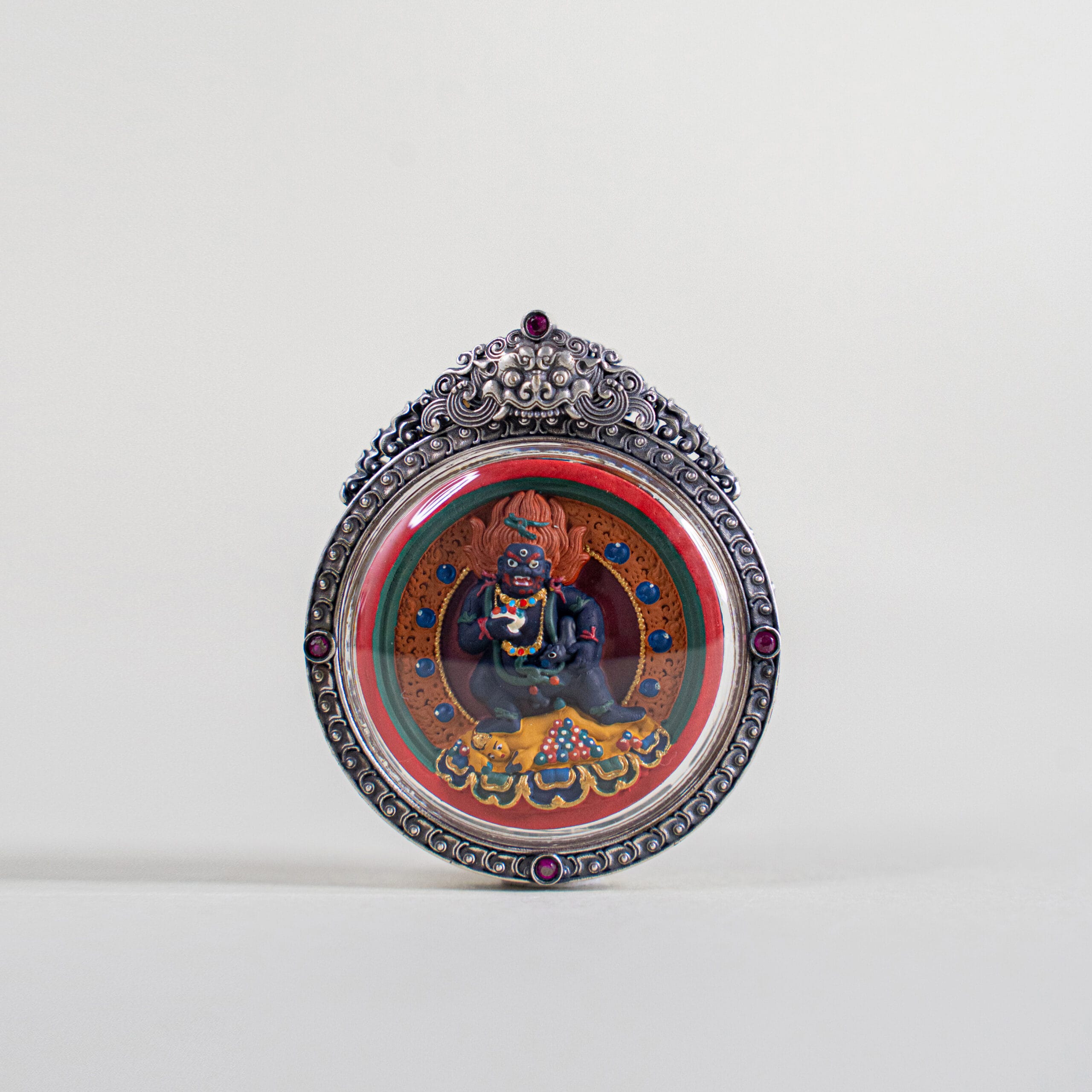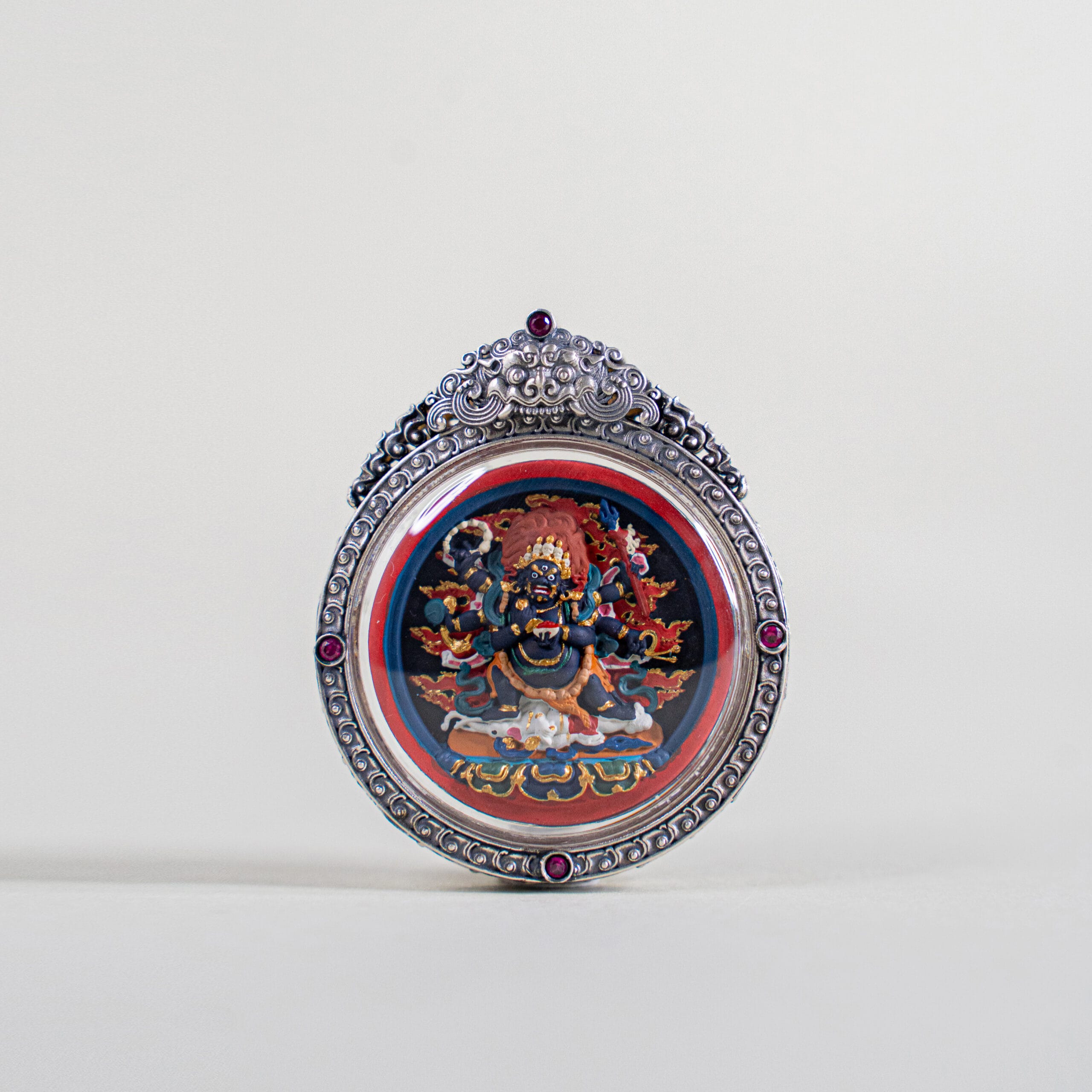 玛哈嘎拉,又称大黑天,是密宗最强大的忿怒护法之一,象征无上威德与力量。祂能摧破障碍、护法护财,并赐予修行者自信与果断之力,使心志坚定、气场提升、威望自生。